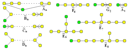 - (el automorfismo de A2n no produce un plegamiento porque los dos nodos centrales están conectados por un enlace, pero en la misma órbita).