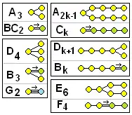 | No dirigido | Diagramas de Dynkin no dirigidos | Diagramas de Coxeter de grupos finitos |