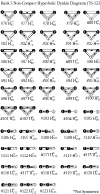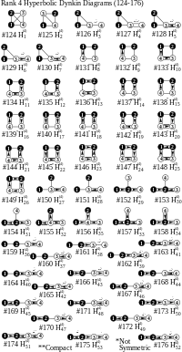 - Carbone, L, Chung, S, Cobbs, C, McRae, R, Nandi, D, Naqvi, Y, and Penta, D: Classification of hyperbolic Dynkin diagrams, root lengths and Weyl group orbits, J. Phys. A: Math. Theor. 43 155209, 2010, arXiv:1003.0564