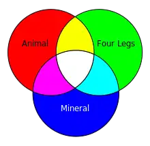 En el sentido de la lógica, uno puede usar la semántica de un modelo teórico para interpretar los diagramas de Euler dentro de un dominio de discurso. En el ejemplo de la figura, el diagrama de Euler representa que los conjuntos Animal y Mineral son disjuntos, porque las curvas correspondientes son disjuntas, y también que el conjunto Four Legs es un subconjunto del conjunto Animal. El diagrama de Venn que usa las mismas categorías Animal, Mineral y Four Legs no encapsula esta información. Tradicionalmente, este vacío de un conjunto en los diagramas de Venn es descrito por un sombreado o achurado de la región. Los diagramas de Euler, en cambio, representan vacío ya sea por el sombreado o por la omisión de una de las zonas.