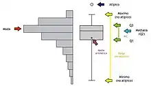 Un diagrama de caja (también, diagrama de caja y bigotes o box plot) es un método estandarizado para representar gráficamente una serie de datos numéricos a través de sus cuartiles. De esta manera, se muestran a simple vista la mediana y los cuartiles de los datos,[1] y también pueden representarse sus valores atípicos. Conviene recordar que se utilizan las bisagras de Tukey, y no los cuartiles, a la hora de dibujar la caja del gráfico, aunque los resultados son semejantes en muestras grandes.