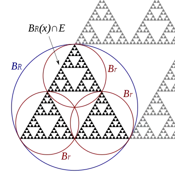 La intuición subyacente a esta definición es que, para un conjunto E con dimensión entera n "ordinaria", el número de bolas pequeñas de radio r necesarias para cubrir la intersección de una bola más grande de radio R con E se escalará como (Rr)n.