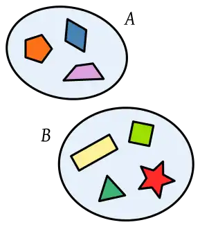 Por ejemplo {1, 2, 3} y {a, b, c} son conjuntos disjuntos.