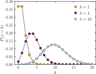 Sea y una variable aleatoria discreta, si la variable aleatoria tiene una distribución de Poisson con parámetro entonces escribiremos o .