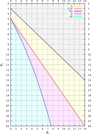 Rhind (1909, pp. 430–432) ideó una forma sencilla de visualizar el espacio de parámetros del sistema Pearson, el cual fue adoptado por Pearson (1916, plate 1 and pp. 430ff., 448ff.). Los tipos de Pearson son caracterizados por dos cantidades, comúnmente referidas como β1 y β2. El primero es el cuadrado de la asimetría: donde γ1 es la asimetría o el tercer momento estandarizado. El segundo es el curtosis tradicional o cuarto momento estandarizado: β2 = γ2 + 3. Tratamientos modernos definen kurtosis γ2 en términos de cumunlant en vez de momentos, por lo tanto una distribución normal tenemos γ2 = 0 y β2 = 3. Aquí seguimos el precedente histórico y usamos β2. EL diagrama a la derecha muestra dada una distribución concreta a qué tipo de Pearson pertenece (identificado por el punto (β1, β2)). Muchas de las distribuciones asimétricas y no mesocúrtica que hoy nos son familiares, no eran conocidas a principios de 1890. Lo que hoy se conoce como distribución beta había sido usada por Thomas Bayes como la Probabilidad a posteriori del parámetro de la distribución de Bernoulli en su trabajo de 1763 sobre la probabilidad inversa. La distribución beta ganó prominencia debido a su pertenencia al sistema Pearson y era conocida hasta los años 1940 como la distribución Pearson tipo I. [1] (La distribución de Pearson tipo II es un caso especial derivada del tipo I, pero ya no es tratada por separado.) La distribución gamma originada como resultado del trabajo de Pearson (Pearson 1893, p. 331; Pearson 1895, pp. 357, 360, 373–376) y era conocida como la distribución de Pearson tipo III, antes de adquirir su nombre moderno en 1930s y 1940s. .[2] El artículo de Pearson escrito en 1895 introdujo la distribución de tipo IV, la cual contiene la distribución t-Student como caso especial, precediendo por varios años a William Sealy Gosset. En su artículo de 1901 introdujo la distribución gamma inversa (tipo V) y la distribución beta prima (tipo VI).