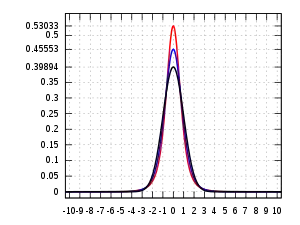 Lo cual requiere m>3/2. Esto conlleva una pérdida menor de generalidad pero asegura que la varianza de la distribución existe y es igual a σ2. Ahora el parámetro m solo controla la curtosis de la distribución. Si m tiende a infinito como λ y σ se mantiene constante, la distribución normal emerge como un caso especial: