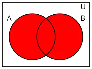 En términos de la disyunción lógica, la unión utilizada en teoría de conjuntos se define así: x ∈ A ∪ B si y sólo si (x ∈ A) ∨ (x ∈ B). Debido a esta condición la disyunción lógica satisface muchas de las identidades que se verifican mediante la unión de la teoría de conjuntos, tales como asociatividad, conmutatividad, distributividad y las leyes de De Morgan.