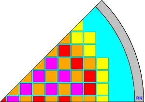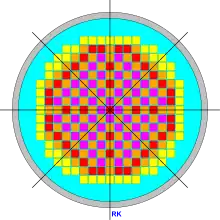 Los dos primeros gráficos provienen de la rama de cálculos globales de la física de los reactores nucleares. El primero muestra una sección transversal horizontal a través de un dominio fundamental, el segundo una sección transversal horizontal a través de todo el reactor (de la serie EPR), que está dividido en ocho dominios fundamentales por las cuatro líneas de simetría especular que también se muestran.