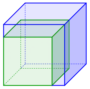 - El volumen del cubo con la longitud de la arista es igual al doble del volumen del cubo inicial con la longitud de la arista