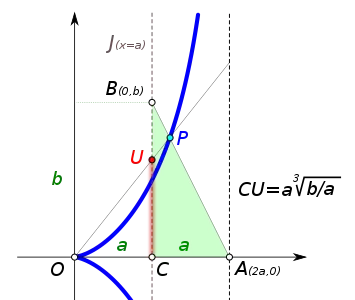 Al intersecar las dos parábolas se obtiene así un punto cuya abscisa es el lado del cubo con un volumen que duplica el volumen del cubo dado.