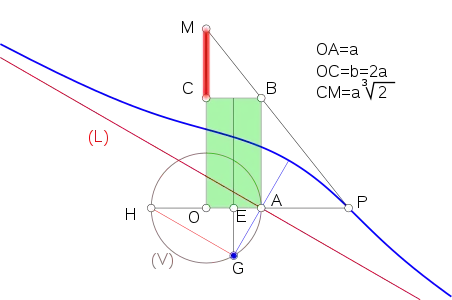 Usando la notación moderna, la segunda solución se obtiene como la intersección de una parábola y de una hipérbola. Considérese la parábola y la hipérbola, respectivamente, de ecuaciones:
