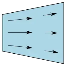 El efecto del tensión en el flujo continuo está representado por la ∇p y ∇ · τ se términos; estos son gradientes de fuerzas superficiales, análogos a las tensiones en un sólido. Aquí ∇p es el gradiente de presión y surge de la parte isotrópica del tensor de tensión de Cauchy Esta parte está dada por las tensiones normales que ocurren en casi todas las situaciones. La parte anisotrópica del tensor de tensión da lugar a ∇ · τ, que generalmente describe fuerzas viscosas; Para flujo incompresible, esto es solo un efecto de corte. Así, τ es el tensor de desviación. y el tensor de tensión es igual a:[4]