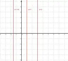 - Otro caso especial de la forma general donde y . El gráfico es una línea vertical, interceptando el eje X en E.