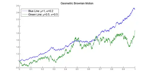 donde es el proceso de Wiener (o movimiento browniano estandarizado). Esta ecuación debe ser interpretada como una expresión informal, que es rigurosamente interpretable en forma de ecuación integral