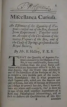 - Halley E. (1686), "An Historical Account of the Trade Winds, and Monsoons, Observable in the Seas between and Near the Tropicks, with an Attempt to Assign the Phisical Cause of the Said Winds", Philosophical Transactions, 16:153–168 doi 10.1098/rstl.1686.0026