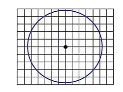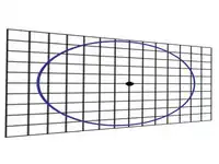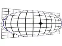 ![]() Una circunferencia en un plano cartesiano no deformado. | ![]() Esta circunferencia se transforma en una elipse mediante una anamorfosis, donde el eje Y se ha contraído y/o el X se ha dilatado. | ![]() Otra modificación del plano contenedor; los ejes no se deforman ortogonalmente, sino que cada punto corresponde a otro según una homología de centro impropio (afinidad). |