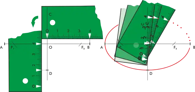 Dado el eje mayor con los focos, la medida a aplicada a cada foco nos da arcos que se cruzan en los extremos del eje menor.