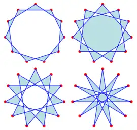 Como 11 es primo, todos los endecagramas son polígonos en estrella y no figuras compuestas.