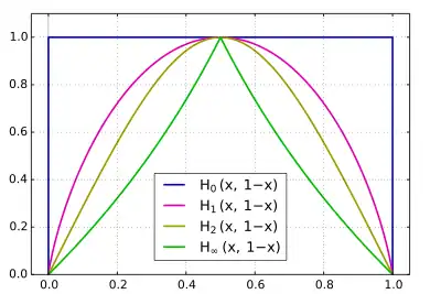 En el límite , la entropía de Rényi converge a la entropía min :