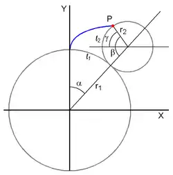 Sustituyendo β y γ en las ecuaciones [1] y [2] tenemos la ecuación paramétrica de la epicicloide: