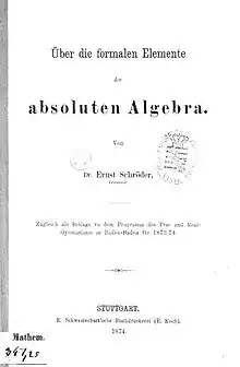 - Schröder, E., 1898. "Über zwei Definitionen der Endlichkeit und G. Cantor'sche Sätze ", Abh. Kaiserl. Leop.-Car. Akad. Naturf 71: 301-362.
