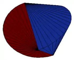 - A partir de la mitad obtenida se construye un sólido de revolución haciendo girar dicha mitad alrededor del eje a lo largo del cual se realizó el corte.