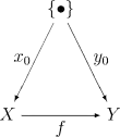 La clase de todos los espacios puntados forma una categoría Arriba con punto base preservando mapas continuos como morfismos . Otra forma de pensar en esta categoría es como la categoría de coma, ( arriba ) donde es cualquier espacio de un punto y Top es la categoría de espacios topológicos . (Esto también se llama una sobrecategoría denotada arriba ) Los objetos en esta categoría son mapas continuos Se puede pensar que tales mapas seleccionan un punto base en Los morfismos en ( Top ) son morfismos en Top para los que conmuta el siguiente diagrama: