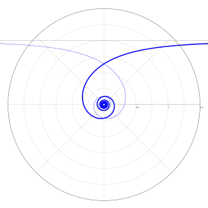 Una espiral hiperbólica es una curva plana trascendental, también conocida como espiral recíproca. Se define por la ecuación polar rθ = a, y es la inversa de la espiral de Arquímedes.