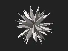 La estelación completa también se puede ver como un poliedro estrellado autointersecado que tiene 20 caras correspondientes a las 20 caras del icosaedro subyacente. Cada cara es una estrella irregular 9/4 (es decir, un eneagrama de 9 vértices conectados por diagonales cada 4 vértices).(Cromwell, 1997, p. 259) Dado que tres caras se encuentran en cada vértice, tiene 20 × 9 / 3 = 60 vértices (estas son la capa más externa de vértices visibles y forman las puntas de las "espinas") y 20 × ; 9 / 2 = 90 aristas (cada arista del poliedro estrella incluye y conecta dos de las 180 aristas visibles).