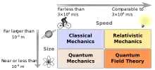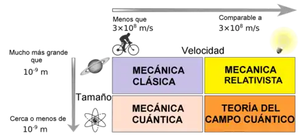 En términos generales, las leyes de la física clásica describen con precisión sistemas cuyas escalas de longitud importantes son mayores que la escala atómica y cuyos movimientos son mucho más lentos que la velocidad de la luz. Fuera de este ámbito, las observaciones no coinciden con las predicciones de la mecánica clásica. Einstein aportó el marco de la relatividad especial, que sustituyó las nociones de tiempo y espacio absolutos por las de espaciotiempo y permitió una descripción precisa de los sistemas cuyos componentes tienen velocidades cercanas a la de la luz. Planck, Schrödinger y otros introdujeron la mecánica cuántica, una noción probabilística de las partículas y las interacciones que permitió una descripción precisa de las escalas atómica y subatómica. Posteriormente, la teoría cuántica de campos unificó la mecánica cuántica y la relatividad especial. La relatividad general permitió un espaciotiempo dinámico y curvo, con el que se pueden describir bien los sistemas altamente masivos y la estructura a gran escala del universo. La relatividad general aun no se ha unificado con las otras descripciones fundamentales; se están desarrollando varias teorías candidatas de gravedad cuántica.