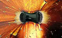 La astrofísica es el desarrollo y estudio de la física aplicada a la astronomía.[47] Estudia las estrellas, los planetas, las galaxias, los agujeros negros y demás objetos astronómicos como cuerpos de la física, incluyendo su composición, estructura y evolución. La astrofísica emplea la física para explicar las propiedades y fenómenos de los cuerpos estelares a través de sus leyes, fórmulas y magnitudes.[48] El inicio de la astrofísica fue posiblemente en el siglo XIX cuando gracias a los espectros se pudo averiguar la composición física de las estrellas. Una vez que se comprendió que los cuerpos celestes están compuestos de los mismos que conforman la Tierra y que las mismas leyes de la física y de la química se aplican a ellos, nace la astrofísica como una aplicación de la física a los fenómenos observados por la astronomía. La astrofísica se basa, pues, en la asunción de que las leyes de la física y la química son universales, es decir, que son las mismas en todo el universo.