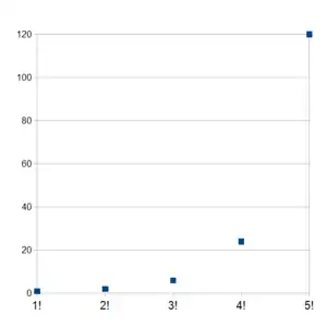 Gráfica de los factoriales del 1 al 5
