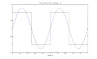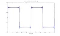 Como se puede apreciar, a medida que se adhieren más términos a las series, ésta se va aproximando a la onda cuadrada dado que las oscilaciones se vuelven más rápidas y más pequeñas, pero los picos no disminuyen. Estos picos en las series de Fourier de la función cuadrada nunca desaparecen; son llamados el fenómeno de Gibbs nombrado por el físico estadounidense Josiah Willard Gibbs. Ocurren cada vez que las señales tienen discontinuidades de salto (generalmente en los extremos), y siempre estarán presentes cuando la señal tiene oscilaciones fuertes como en este caso de uno a menos uno
