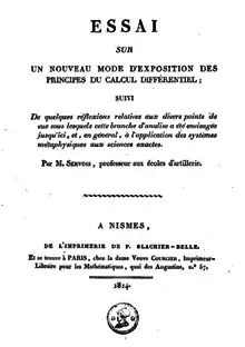 A finales de 1814, consolidó sus ideas sobre una formalización algebraica del cálculo en su obra más célebre, Essai sur un nouveau mode d'exposition des principes du calcul différential (Ensayo sobre un nuevo método de exposición de los principios del cálculo diferencial).[6] Fue en este artículo, al considerar ecuaciones funcionales abstractas de cálculo diferencial, donde propuso los términos "conmutativo" y "distributivo" para describir las propiedades de las funciones.
