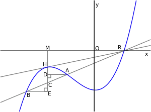 En el siglo XI, el poeta-matemático persa, Omar Jayam (1048-1131), realizó un progreso significativo en la teoría de las ecuaciones cúbicas. En un texto antiguo, descubrió que una ecuación cúbica puede tener más de una solución y declaró que no se puede resolver utilizando solo la regla y el compás. También encontró una solución geométrica.[15][16] En su trabajo posterior, el "Tratado sobre la demostración de problemas de álgebra", escribió una clasificación completa de ecuaciones cúbicas con soluciones geométricas generales encontradas mediante la intersección de secciones cónicas.[17][18]
