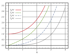 ![]() Función de Bessel modificada de primera especie, Iα(x), para α=0,1,2,3 |