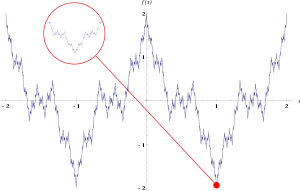 Función de Weierstrass en el intervalo [−2, 2]. La función tiene un comportamiento fractal.