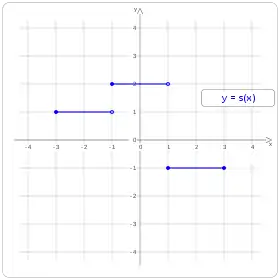 Esta función tiene tres intervalos escalonados, como se ve en la figura.