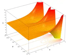 Gráfico de la parte real de una función exponencial en el campo de los complejos