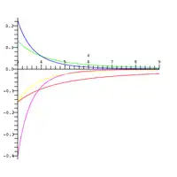 cuyo error es del orden y es válida para grandes valores de . El error relativo de la serie asintótica se muestra en la gráfica de la derecha para varios valores de ( en rojo, en rosa). Cuando , la aproximación dada con es exacta en representación de doble precisión, de 64 bits.