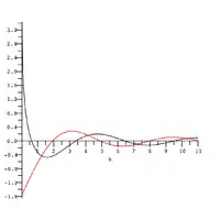 Las partes real e imaginaria de están dibujadas en la gráfica de la derecha en negro y rojo respectivamente.