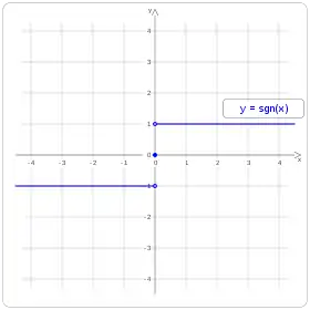 En matemática, la función signo es una función matemática especial, una función definida a trozos, que obtiene el signo de cualquier número real que se tome por entrada. Generalmente se denota por , esta función no debe confundirse con la función seno ( o bien ).
