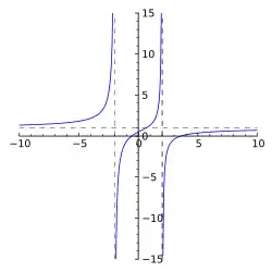 siendo a, b, c, d números reales y c es no nulo. Si el denominador es distinto de cero y si adbc, su gráfica corresponde a una hipérbola .[1] Aplicando el análisis de las funciones racionales, se puede hacer el mismo para las funciones homográficas.