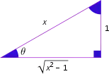 | sec θ = r | ⇔ | θ = ± arcsec(r) + 2 π k | para algún k ∈ ℤ |