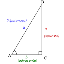 donde es el lado adyacente, es el lado opuesto y es la hipotenusa. A partir de aquí, se puede resolver para .