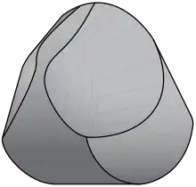 La solución de Domokos y Várkonyi tiene bordes curvos y se asemeja a una esfera con una parte superior aplastada. En la figura superior, descansa en su equilibrio estable. Su posición de equilibrio inestable se obtiene girando la figura 180° alrededor de un eje horizontal. Teóricamente, descansará allí, pero la perturbación más pequeña lo devolverá al punto estable. El gömböc matemático tiene, de hecho, propiedades de tipo esférico. En particular, su planitud y su delgadez son mínimas, y este es el único tipo de objeto no degenerado con esta propiedad.[10] Domokos y Várkonyi están interesados en encontrar una solución poliédrica con una superficie que consista en un número mínimo de planos. Por lo tanto, ofrecen un premio a cualquier persona que encuentre dicha solución, lo que equivale a 10.000 dólares divididos por el número de planos de la solución. Obviamente, se puede aproximar la superficie curvilínea de un gömböc con un número finito de superficies discretas, aunque se estima que se necesitarán miles de planos para lograrlo. Esperan, al ofrecer este premio, estimular una solución radicalmente diferente a la suya.[4]