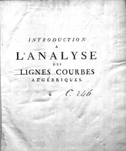 | Obras notables | Introduction à l’analyse des courbes algébriques, 1750 | |