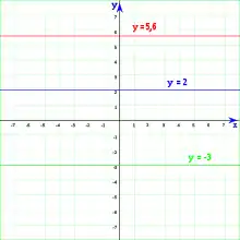 - Las rectas horizontales no cortan al eje de las abscisas y, por tanto, son paralelas a dicho eje y se denominan rectas horizontales. El punto de corte con el eje de ordenadas es el punto . La ecuación de dichas rectas es: