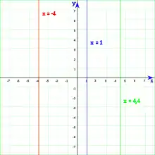 - Las rectas verticales no cortan al eje de ordenadas y son paralelas a dicho eje y se denominan rectas verticales. El punto de corte con el eje de abscisas es el punto . La ecuación de dichas rectas es: