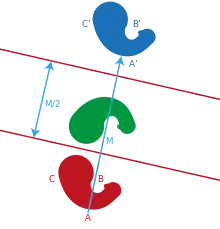 Una exploración de la geometría de las transformaciones a menudo comienza con un estudio de las simetrías que se encuentra en la vida diaria. La primera transformación real es la reflexión respecto a una recta o reflexión respecto a un eje. La composición de dos reflexiones da como resultado un movimiento de rotación cuando las líneas se intersecan, o una traslación cuando son paralelas. Así a través de las transformaciones los alumnos aprenden sobre la isometría afín. Por ejemplo, si se considera la reflexión respecto a una línea vertical y a una línea inclinada a 45° con respecto a la horizontal, se puede observar que una composición produce un cuarto de giro en sentido antihorario (90°), mientras que la composición inversa produce un cuarto de giro en el sentido de las agujas del reloj. Tales resultados muestran que la geometría de las transformaciones incluye procesos conmutativos.